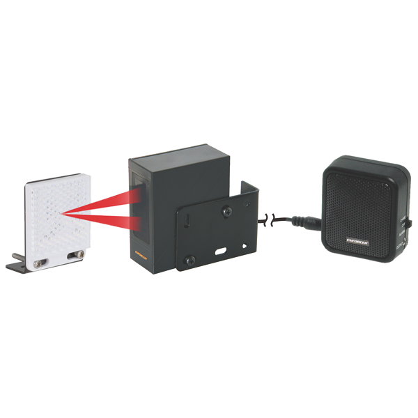 The Enforcer Wireless Entry Alert System is a self-contained easy-to-install alert system for commercial or home applications. Each set contains a reflective photoelectric beam sensor that, when tripped, communicates wirelessly with a speaker installed up to 328ft (100m) away*. An additional speaker may be installed to alert more than one area on the property.