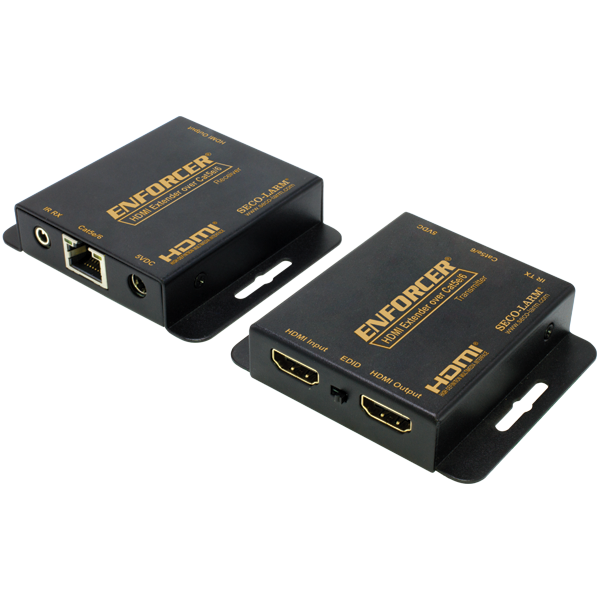 The ENFORCER HDMI Extender over Single Cat5e/6 extends the range of traditional HDMI cabling methods by using an active transmitter and receiver to send video and audio over a single Cat5e/6 cable. HDMI formats as large as 1080p can be transmitted up to 164ft (50m) between the two units with zero signal loss by using integrated circuits in the receiver and transmitter. The extender also supports HDMI loop output, EDID management settings, and one way IR control for remotely controlling HDMI sources and displays.