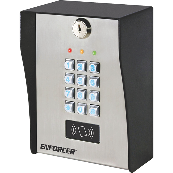 The Enforcer SK-3133-SPQ features rugged construction with a heavy-duty stainless-steel faceplate and a coated steel backing to withstand the elements.
