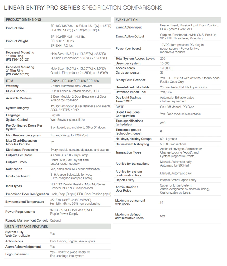 Linear EP-402 EntryPro 2 Door Standalone Telephone Entry & Access ***Discontinued***