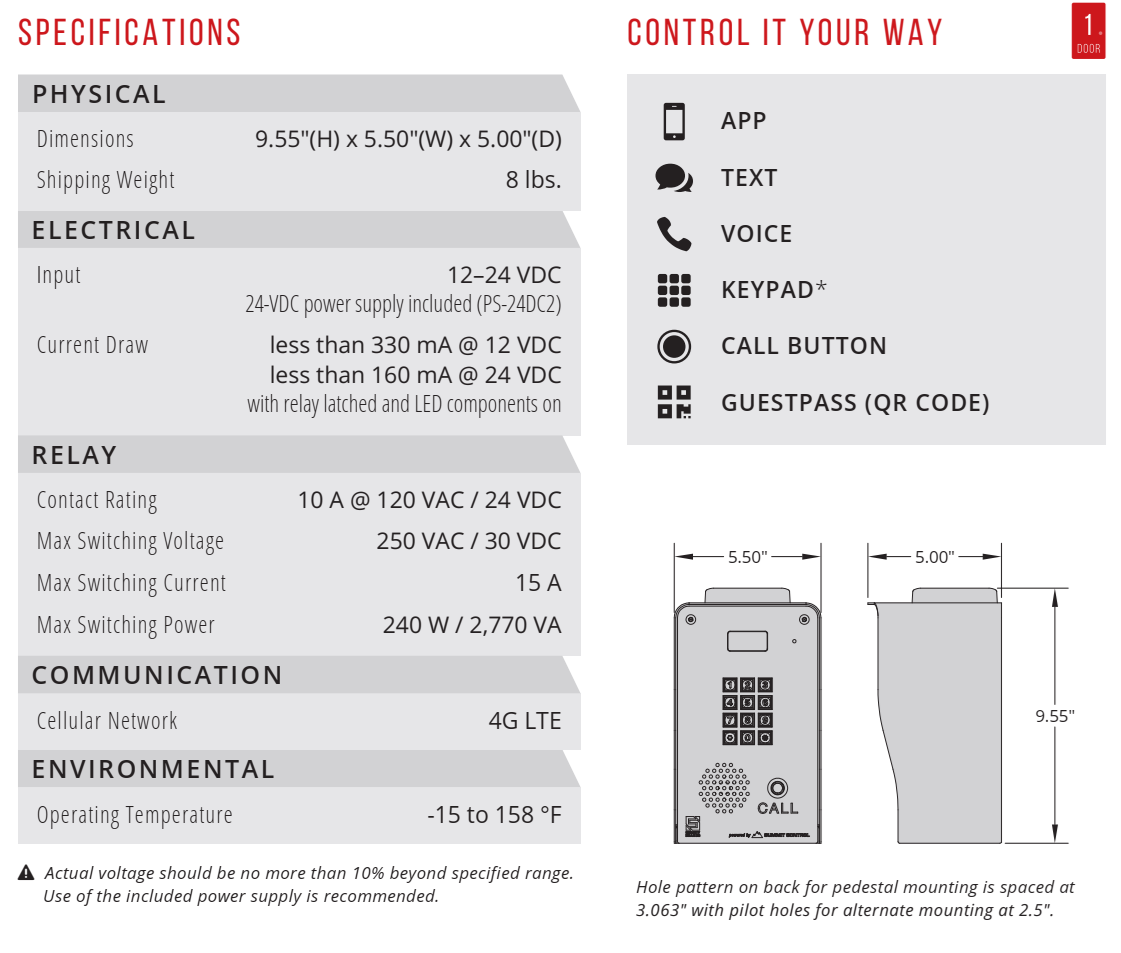 When you need a simple, easy-to-use cellular telephone entry and access control system in one with video for your residence, Ascent R1 has you covered. Control your gate and grant access via app, text, voice, keypad, call button, or QR code!