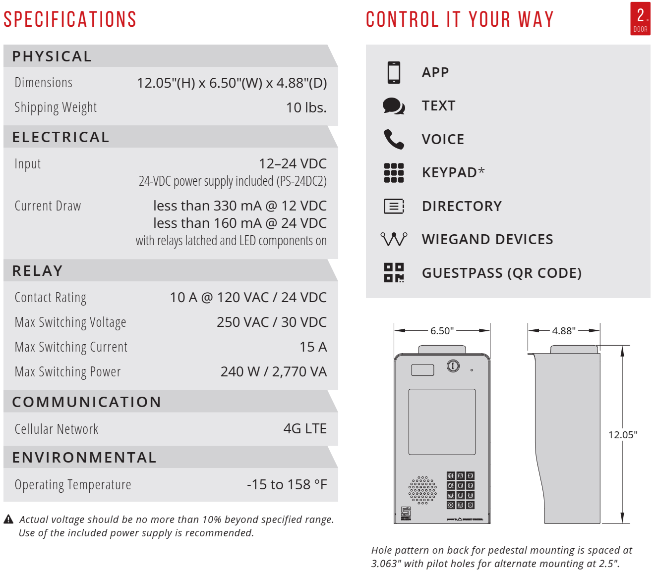 Ascent X2 is designed for apartments, gated communities, or businesses, and can handle up to 30 residents. It features an LED-backlit directory for user-printed inserts. It is a great choice for replacing aging, antiquated multi-tenant entry systems.