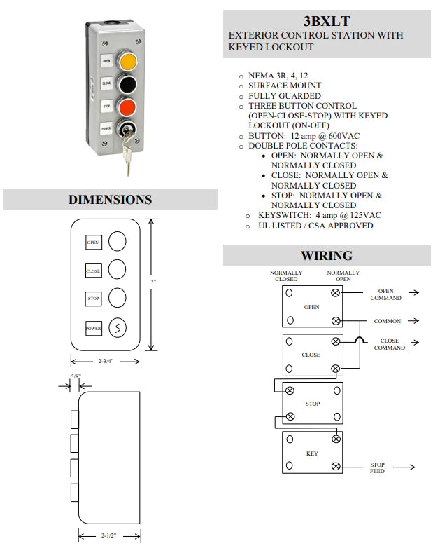 3BXLT 3-Button Exterior Control w/ Lockout (Non-Metallic)