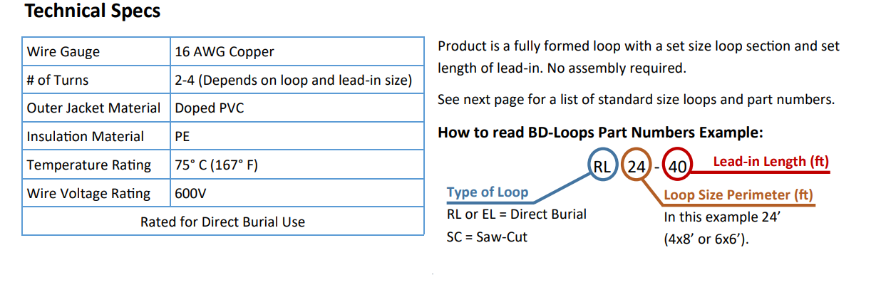 - Every direct burial loop comes with zip ties for installation and loop function labels to label the lead-in wires for easy identification after installation.