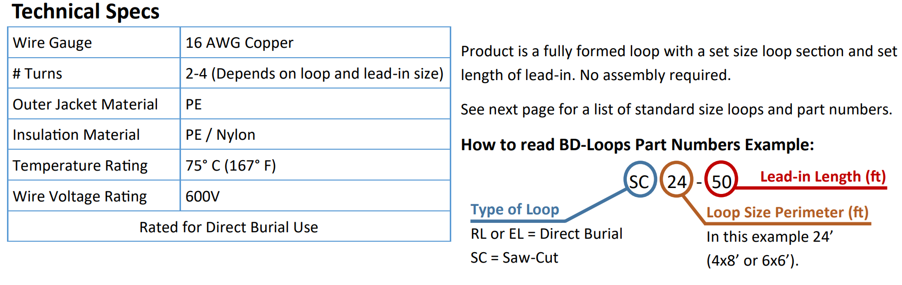 Our BD Loops Preformed Saw-Cut Loops are built with solid 16AWG copper wire to create a tough, rigid product. Backer-rod is built into the wire! No need to use backer-rod if the loop is installed in a 3/16” saw-cut groove. Cuts don't need to be exact! Preformed Saw-Cut Loops can be made up to 4’ smaller. Be slightly conservative with your cuts, and BD Loops Preformed Saw-Cut Loops will fit every time.
