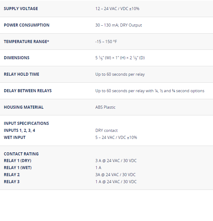 deactivation timer, 3 relay sequencer + “1-shot”, 3 relay sequencer with “independent relay”, interlock timer, interlock ratchet / latching, 2 way 2 relay sequence, normally locked restroom, normally unlocked restroom, 3 relay sequencer + “day / night mode”.