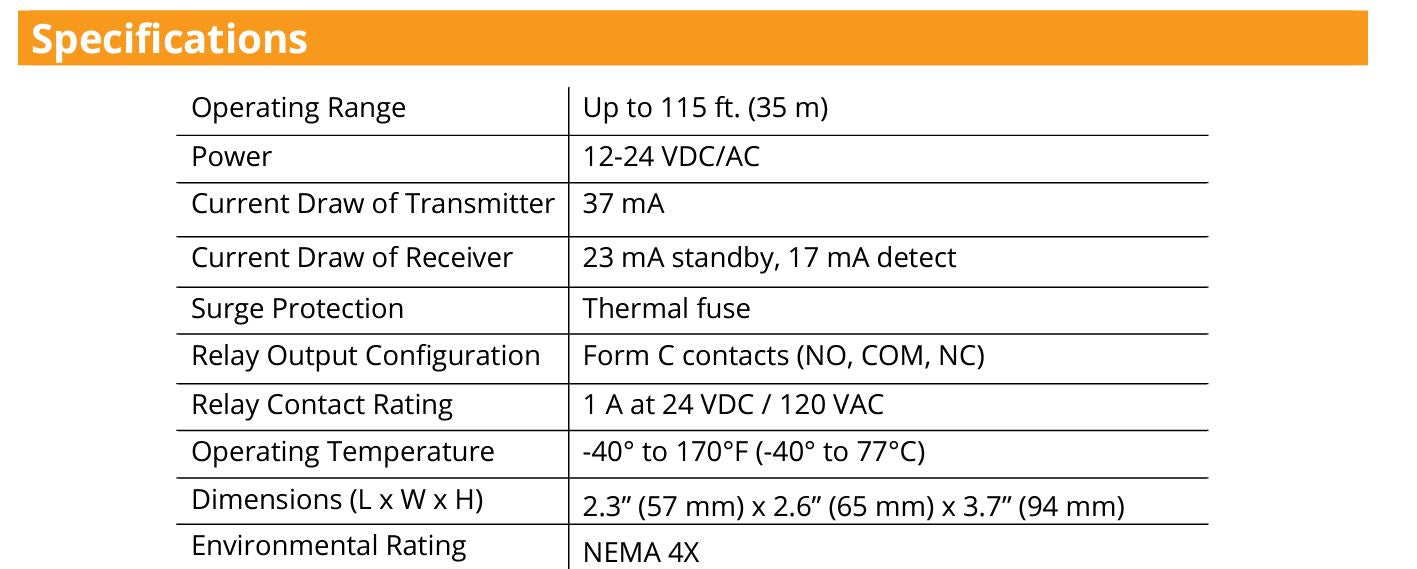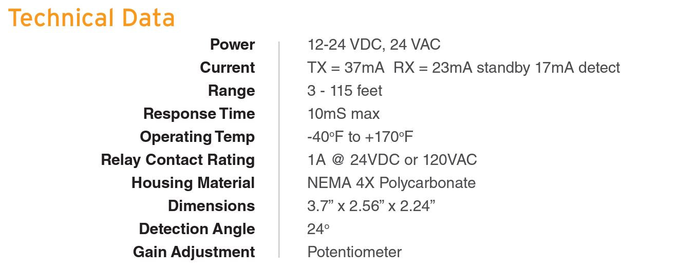The IRB-4X photocell is used as a safety, reversing, or opening device in conjunction with automatic operators. The IRB-4X will work with any control board that accepts dry contact on the input. The easy to install IRB-4X is used with garage doors, rolling doors, parking barriers and other equipment.