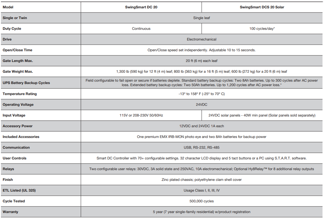 - Configure gate with 70+ field adjustable settings on the Smart DC Controller