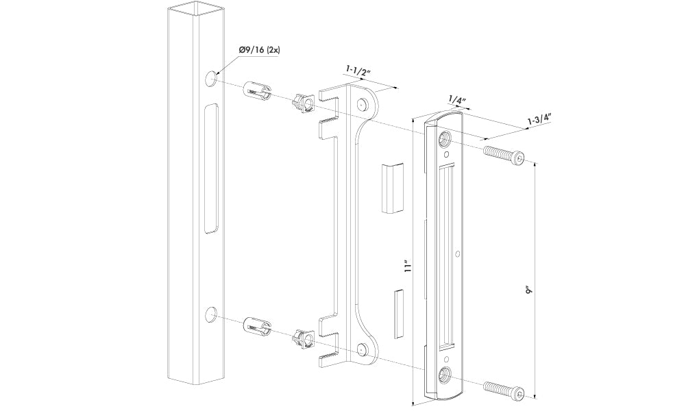 Aesthetical surface mounted keep for small metal, aluminum and PVC gates. Specially designed for Fortylock, Fiftylock and Sixtylock insert locks. The limited 5/16" depth ensures a discreet look. A highly efficient assembly with minimal gate preparations is guaranteed, while the unique Quick-Fix ensures a fast and strong fixation on the gate. This unique keep in combination with the insert lock ensures a strong gate anchoring.