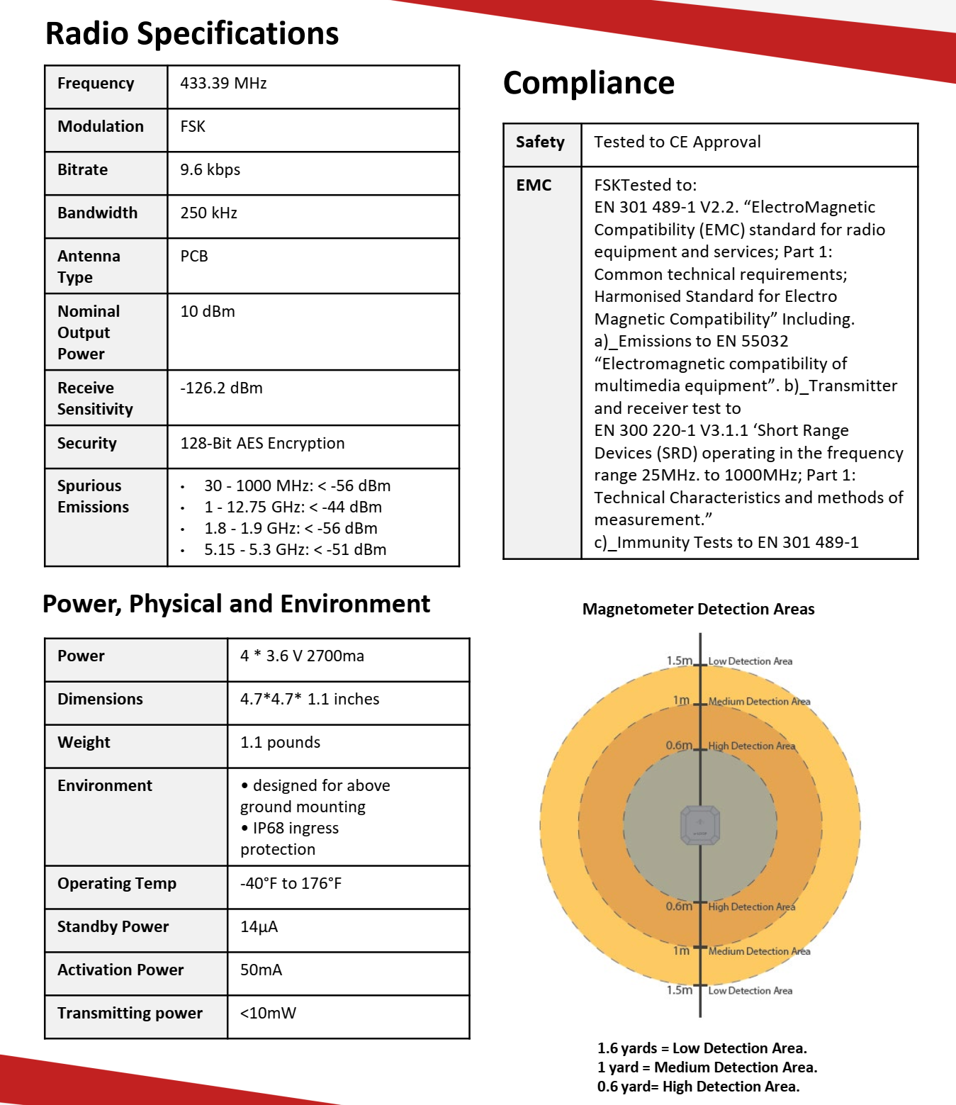 Detection Diameter approximately 5 feet