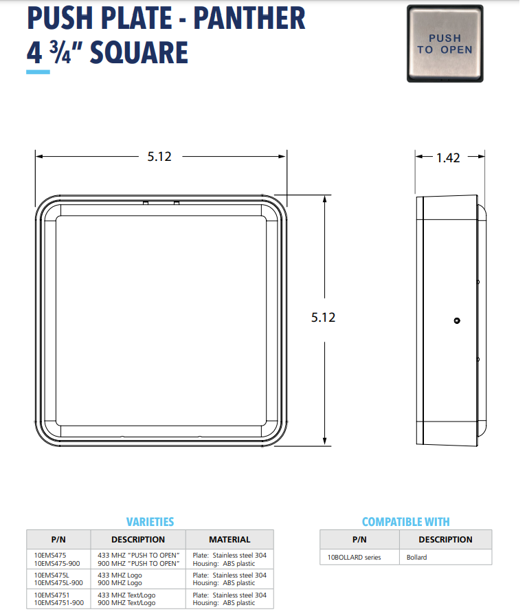 BEA 10EMS475L Panther Wireless Push Plate 4.75" Square Slim Handicap Logo Only