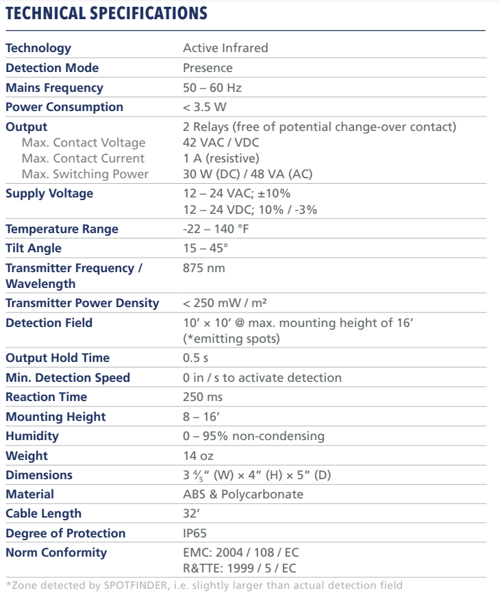 where presence detection is required. It can be mounted from 8 feet to 16 feet to fit most industrial applications.