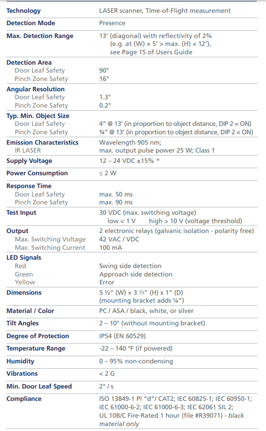 LASER technology ensures independence of all types of flooring (pedi-mats, carpet, reflective flooring, wet surfaces, etc.) and the surrounding environments of the door (guiderails, walls, weather)