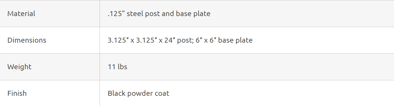 A classic, no-frills solution, the 325-POST-2 is a lightweight steel mounting post pre-configured for EMX photoeyes and the MRD-1P radar sensor. It provides a fast, accurate install option for more utilitarian or cost-sensitive applications.