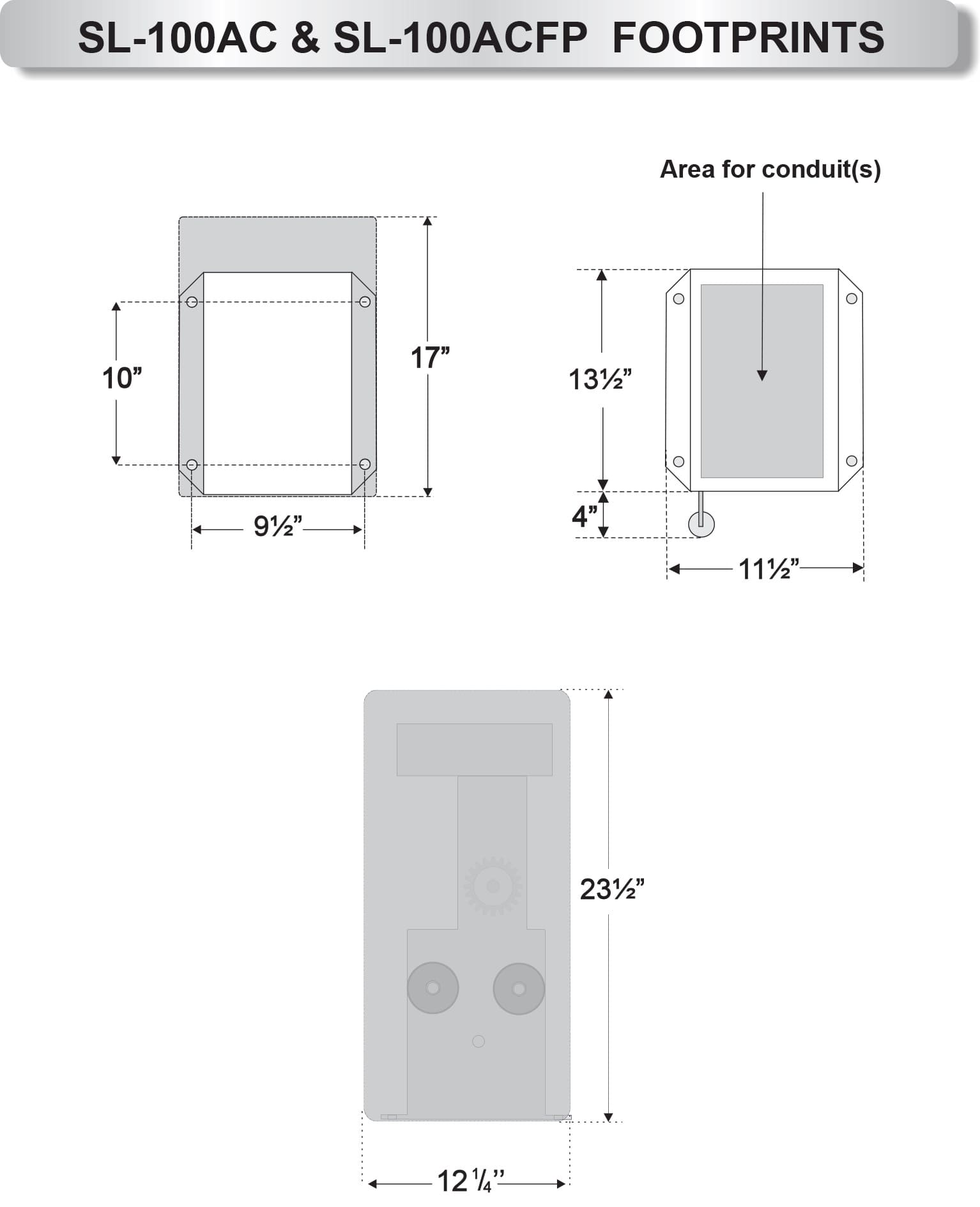 The SL-100FP AC is our most popular automatic gate operator. Affordable, slim and rated for continuous duty on gates up to 1000lbs. This is a 110 Volt AC device capable of years and years of reliable service. The SL-100FP AC was originally intended for applications like public storage facilities in the US. AC operators come with the simplest and most dependable control board in the industry that’s backward compatible. A powerful and durable motor that has been field tested for over 20 years. Majority of AC operators now include an emergency foot pedal release and a built-in loop rack.