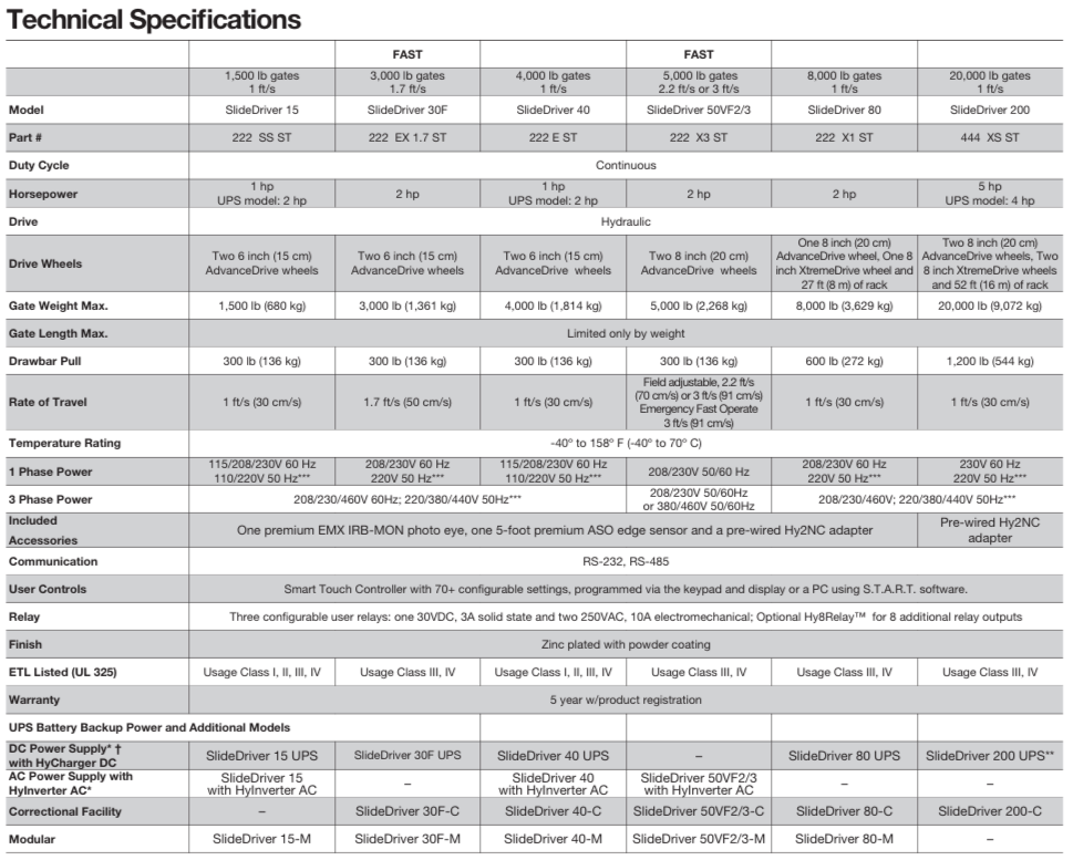 Hysecurity SlideDriver 30F 222 EX 1.7 ST Slide Gate Operator ***(2) 230V 1Phase and (2) 230V 3Phase Left In Stock - Special Pricing***