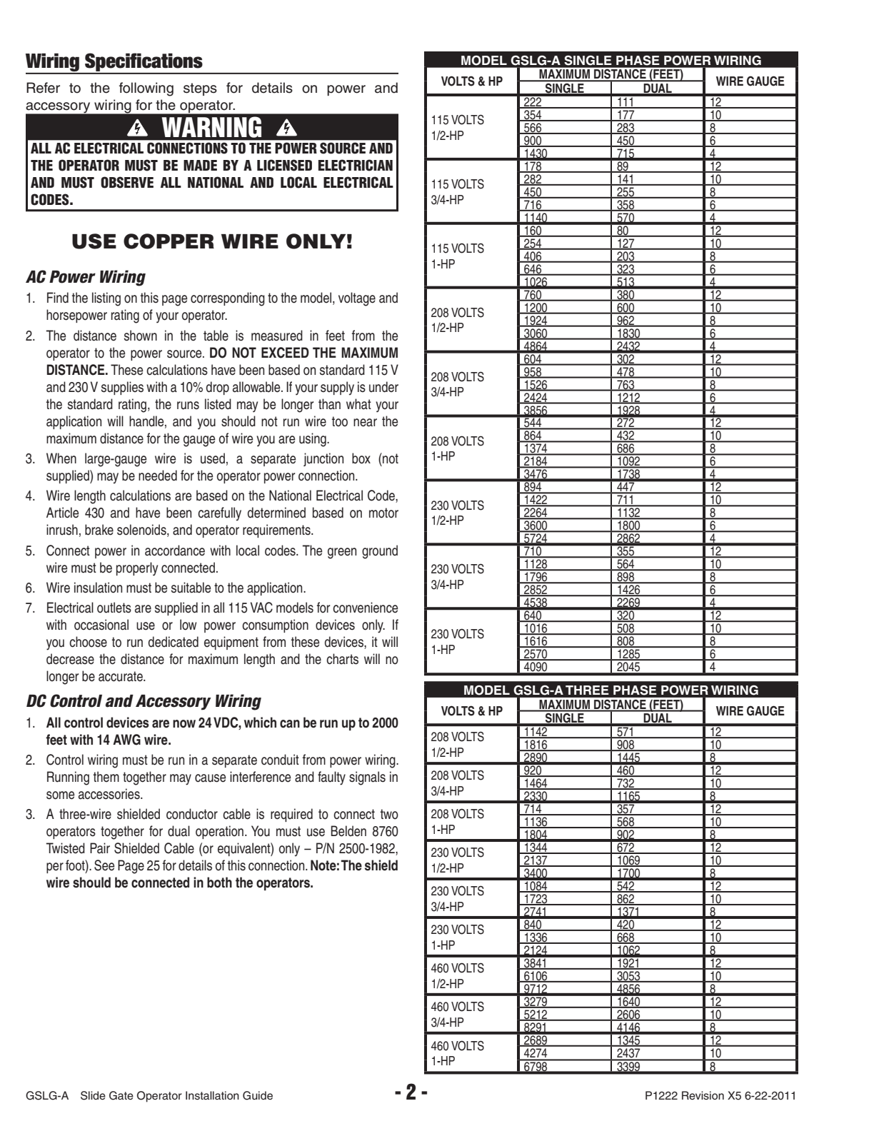 - Built-in dual gate capability using 3-wire shielded cable
