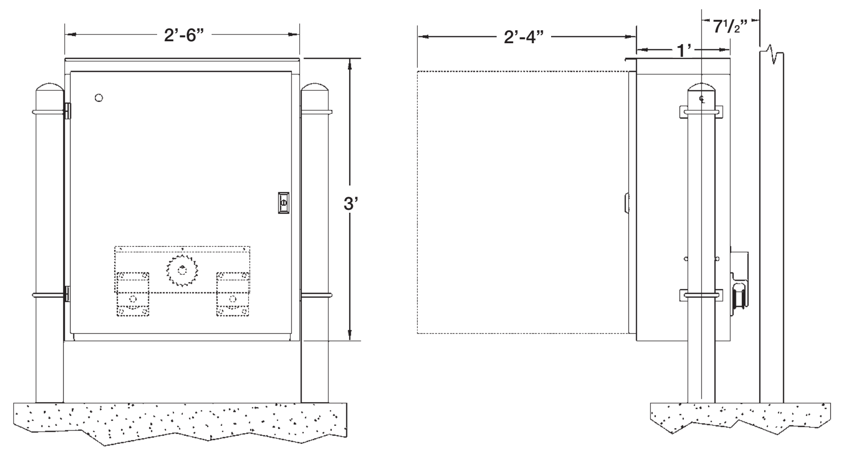 The GSLG is a direct motor to gear reducer driven slide gate operator rated for continuous duty for gates up to 60' and 1400lbs at 12″ per second gate speed.