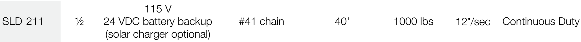 Linear OSCO SLD-211 1/2HP, 115V, 1Phase, 24VDC Battery Backup Slide Gate Operator rated for continuous duty for gates up to 40' and 1000lbs at 12" per second gate speed.