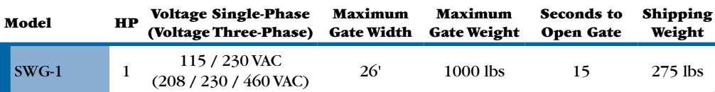 Linear Osco SWG-111 1HP, 115V, 1Phase Commercial/Industrial Swing Gate Operator rated for continuous duty with gates up to 26' and 1000lbs and an opening speed of 15 seconds.