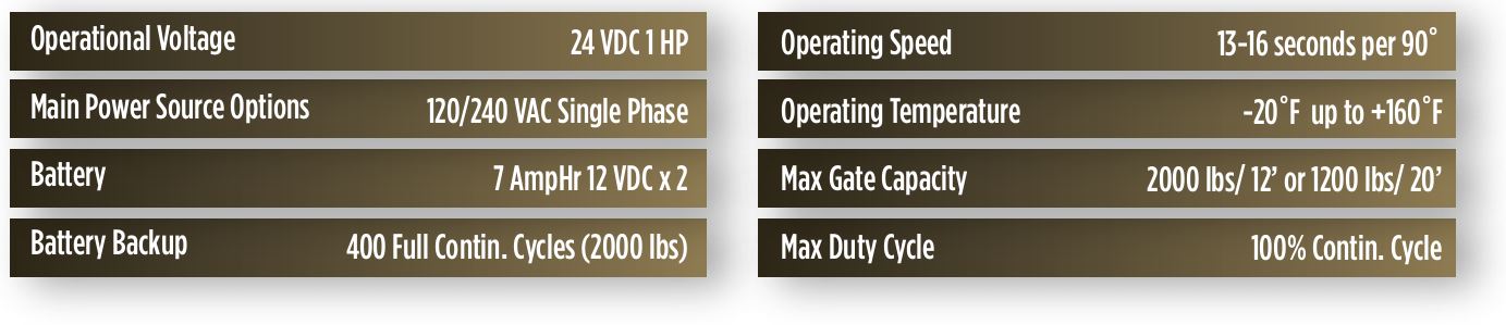 • Designed For Use With Gates Up To 2000 lbs. at 12ft. or 1200 lbs. at 20 ft.