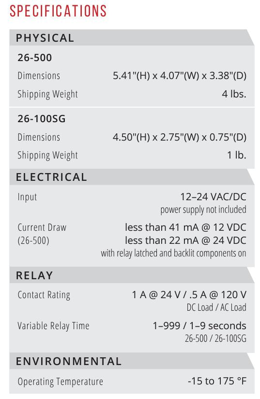 - Input: 12-24 VAC or VDC