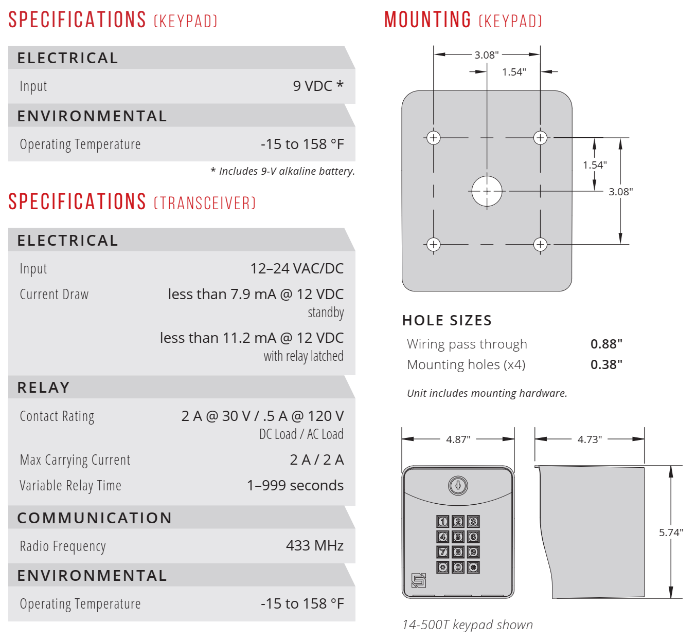 Security Brands Ridge 14-HD500 Keypad HD and Transceiver – 433-MHz – Post Mount
