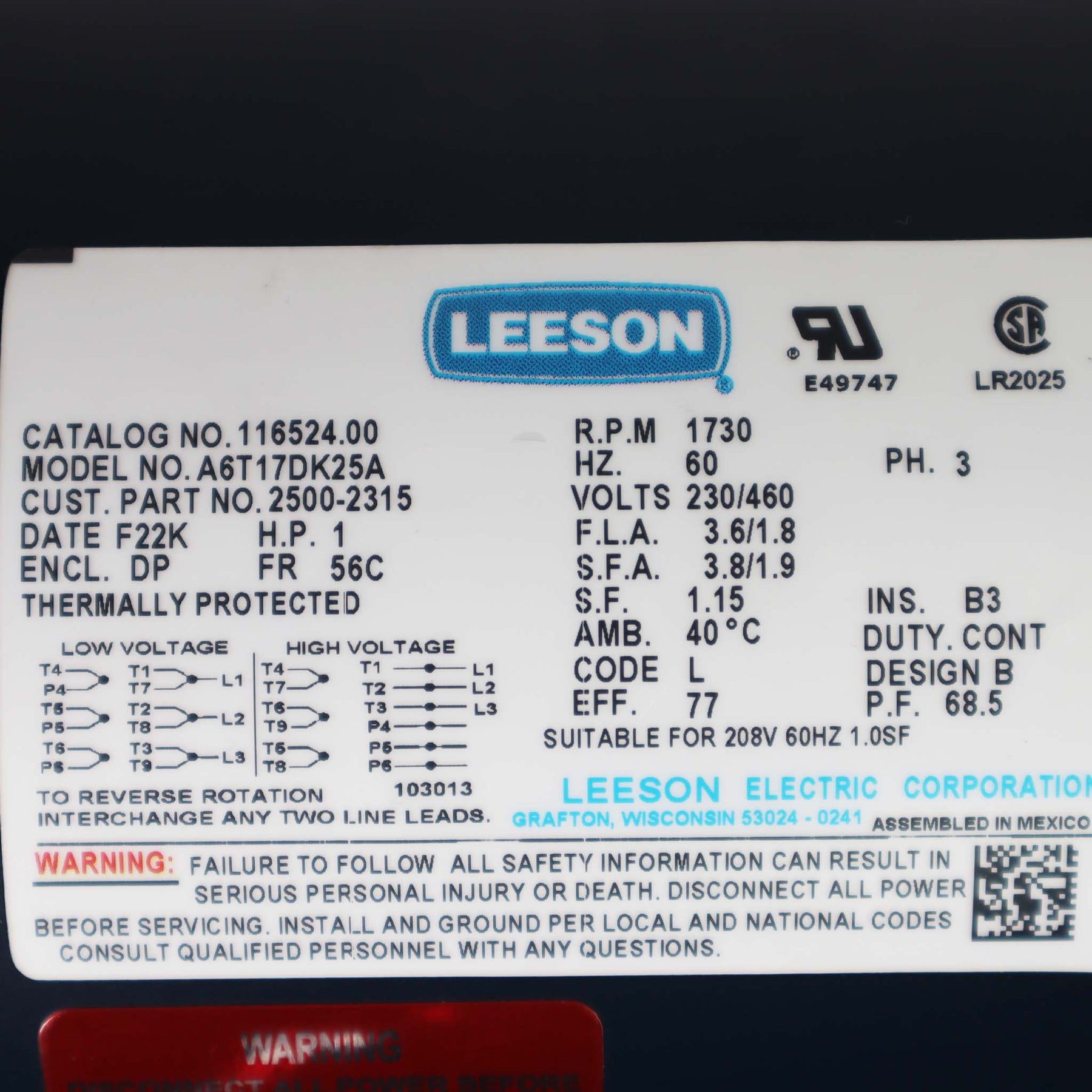 MTR-L 1/2 Hp 230/460-3 W/HAR UPS
