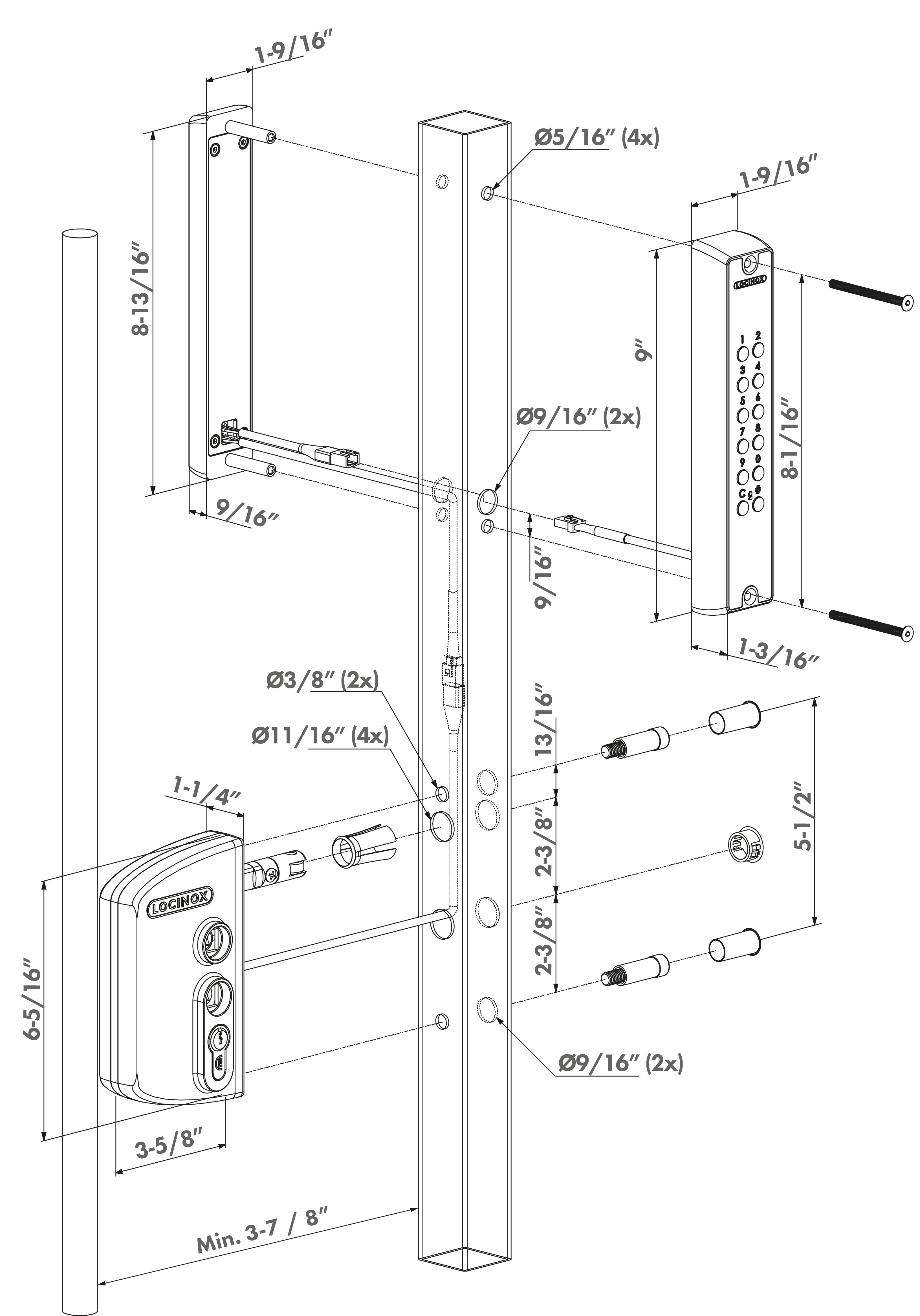 With VOLTA, you can easily add access control to your gate. This solution combines a surface mounted lock with a separate keypad, connected through the gate profile. The lock seamlessly fits into the modular Locinox hole pattern. You have the option to select, modify, or delete up to 100 PIN codes. Thanks to an energy-efficient battery set, which lasts for up to 150,000 open and close cycles in all weather conditions, there is no need for an external power supply. Available in two configurations: double with two keypads or single with one keypad and a free exit.