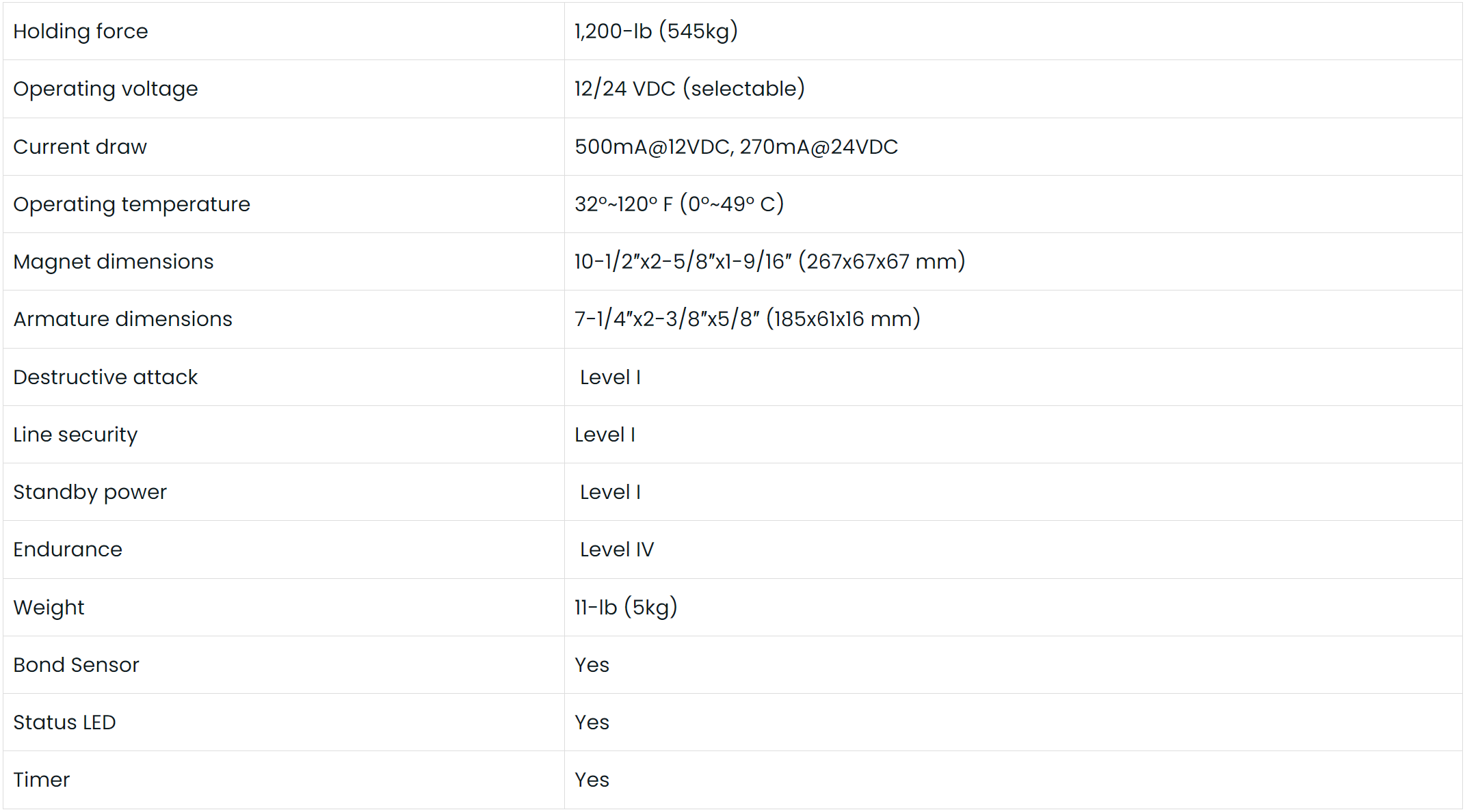 - 1,200-lb (545kg) Holding force