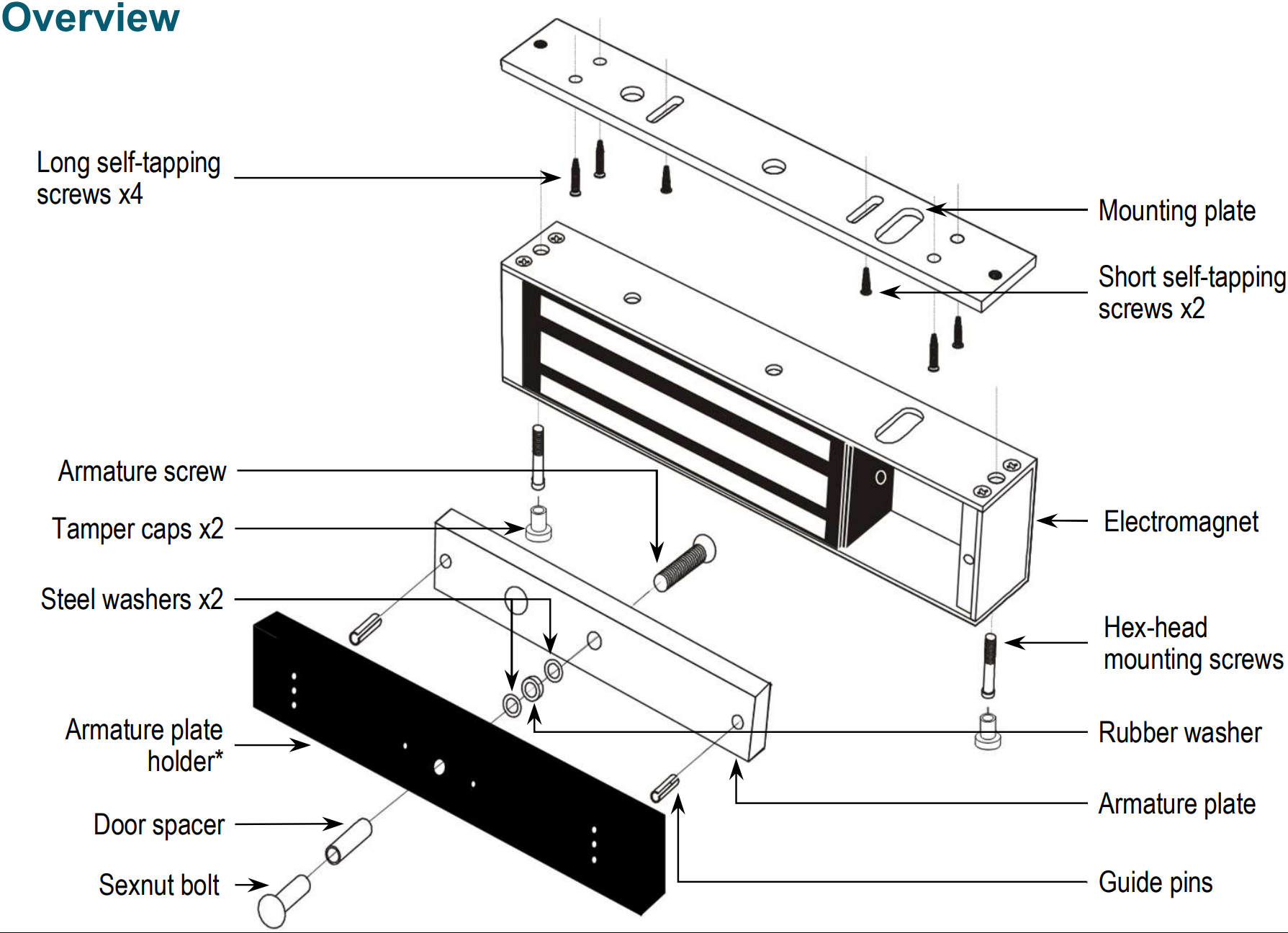 The E-941Sx series of electromagnetic locks is the ideal way to secure a door against unauthorized entry. When power is applied to the electromagnetic lock, it creates an extremely strong magnetic field. The electromagnet is strongly attracted to the steel armature plate which is mounted on the secured door. Once the electromagnet is deactivated, the secured door will function normally without any residual magnetism.