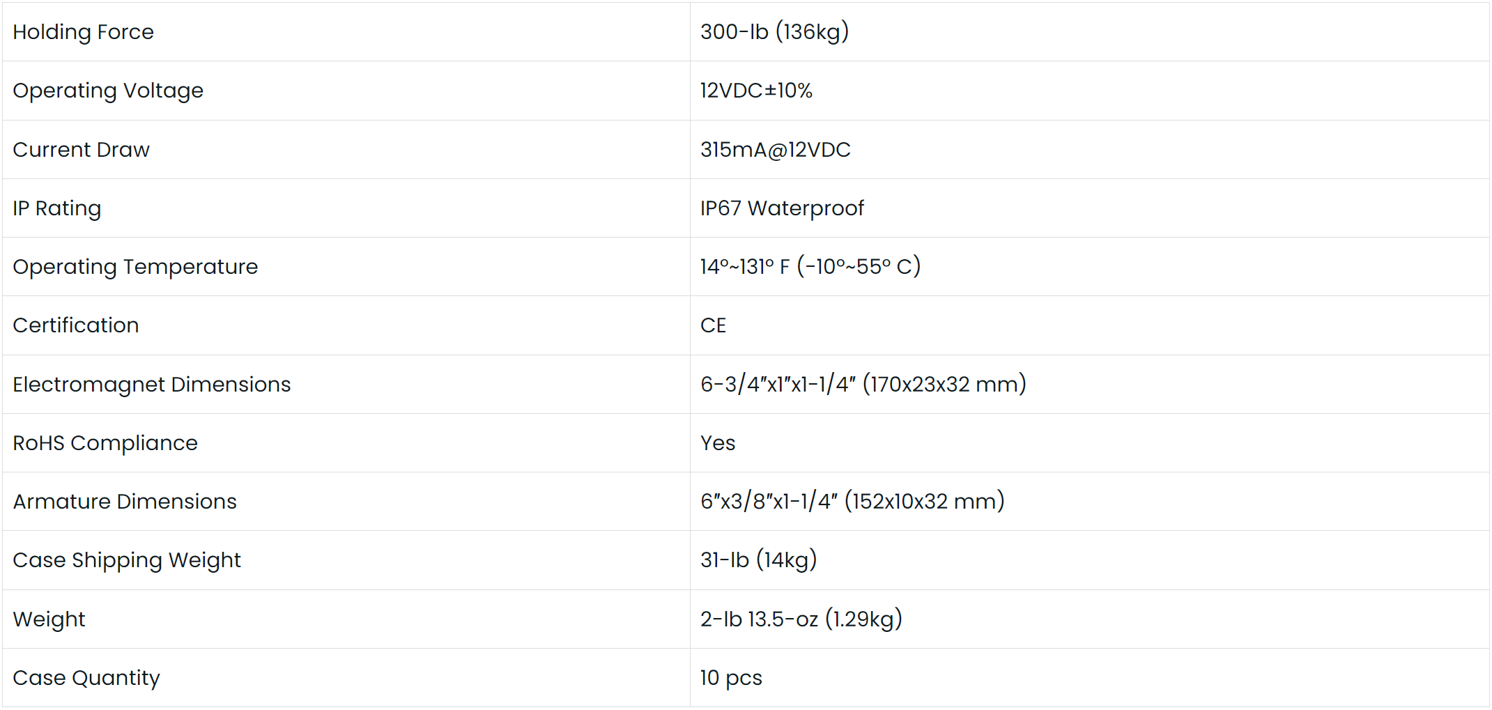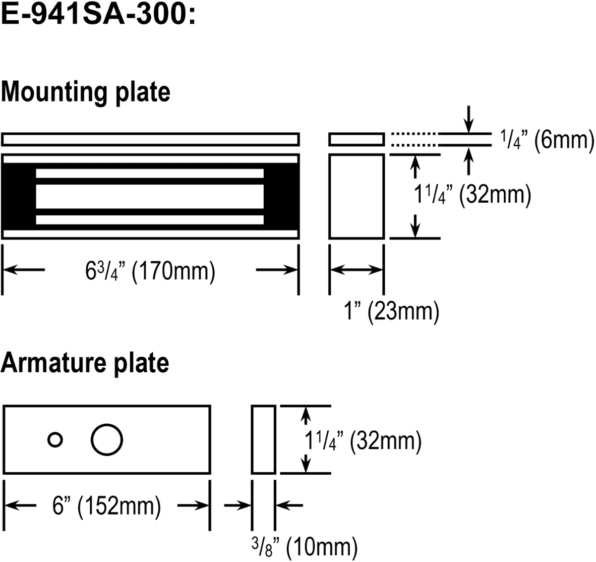 The E-941SA series of electromagnetic locks is the ideal way to secure a door against unauthorized entry. When power is applied to the electromagnetic lock, it creates an extremely strong magnetic field. The electromagnet is strongly attracted to the steel armature plate which is mounted on the secured door. Once the electromagnet is deactivated, the secured door will function normally without any residual magnetism.