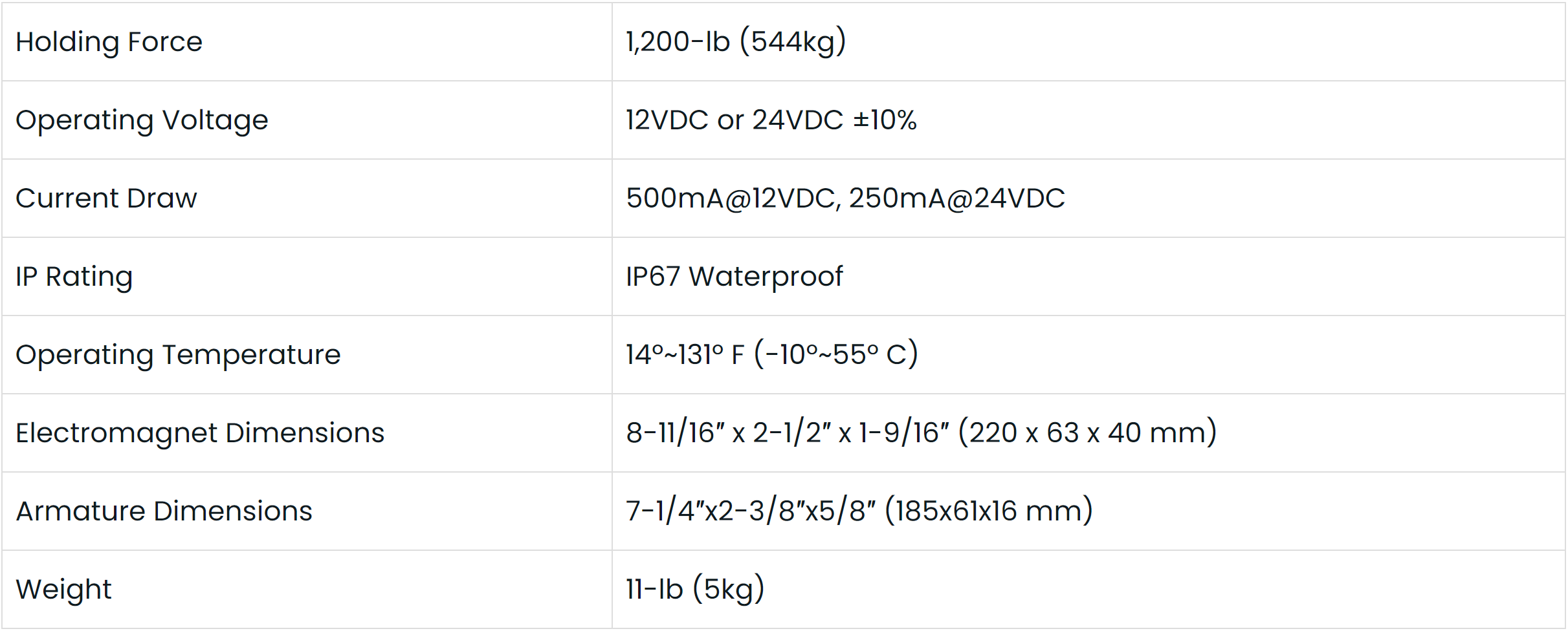 The E-946FC series of electromagnetic locks is the ideal way to secure a sliding or swinging gate weather inside or outside. When power is applied to the electromagnetic lock, it creates an extremely strong magnetic field. The electromagnet is strongly attracted to the steel armature plate which is mounted on the secured door. Once the electromagnet is deactivated, the secured door will function normally without any residual magnetism.
