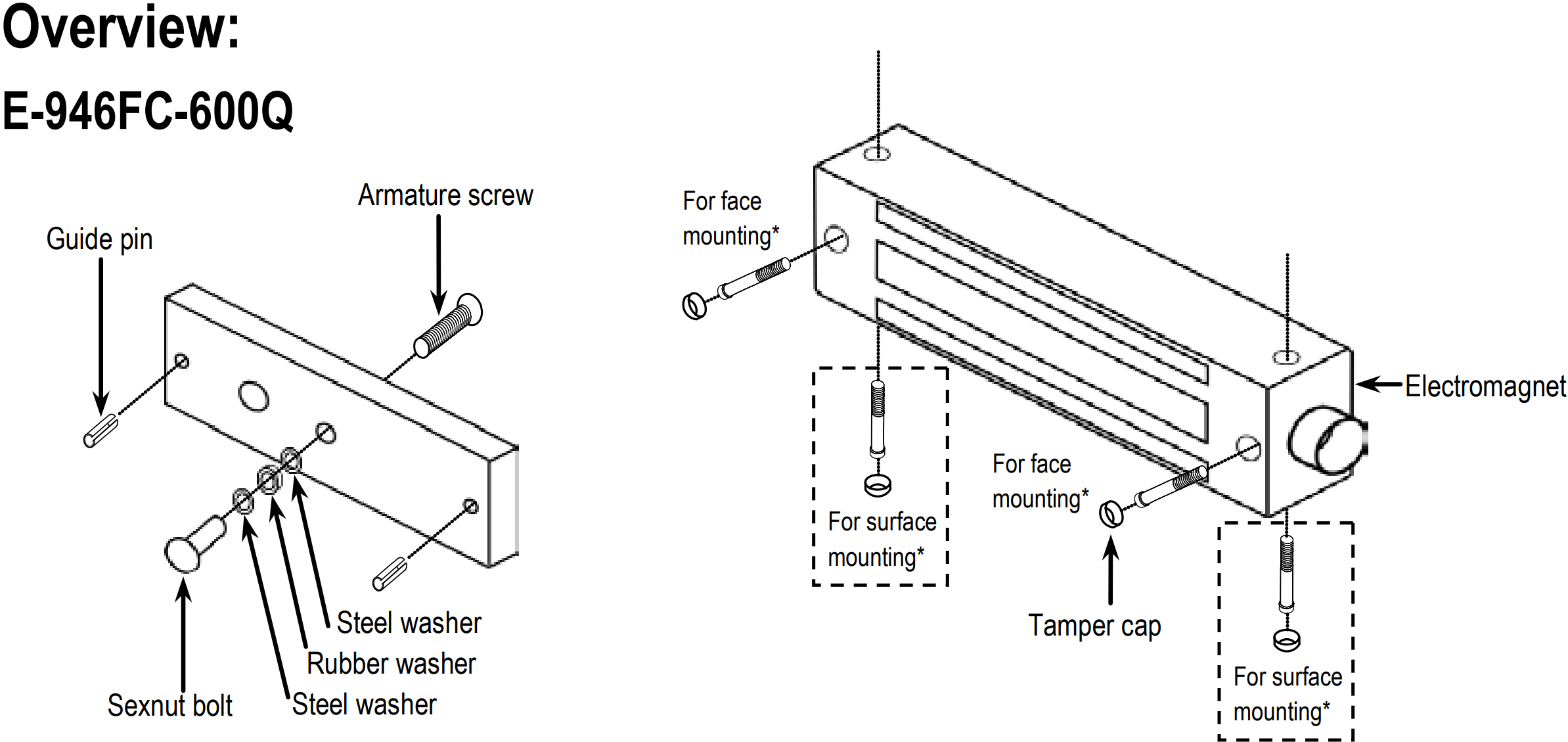 The E-946FC-600Q Electromagnetic Gate Lock comes with face and surface mounting capabilities for sliding and/or swinging gates. It has been designed to be water resistant, in addition to this it has also specially designed to be vandal resistant. It is still able to look sleek and compact with its attractive stainless-steel housing. After all of this is it's still able to have no residual magnetism when not in use.