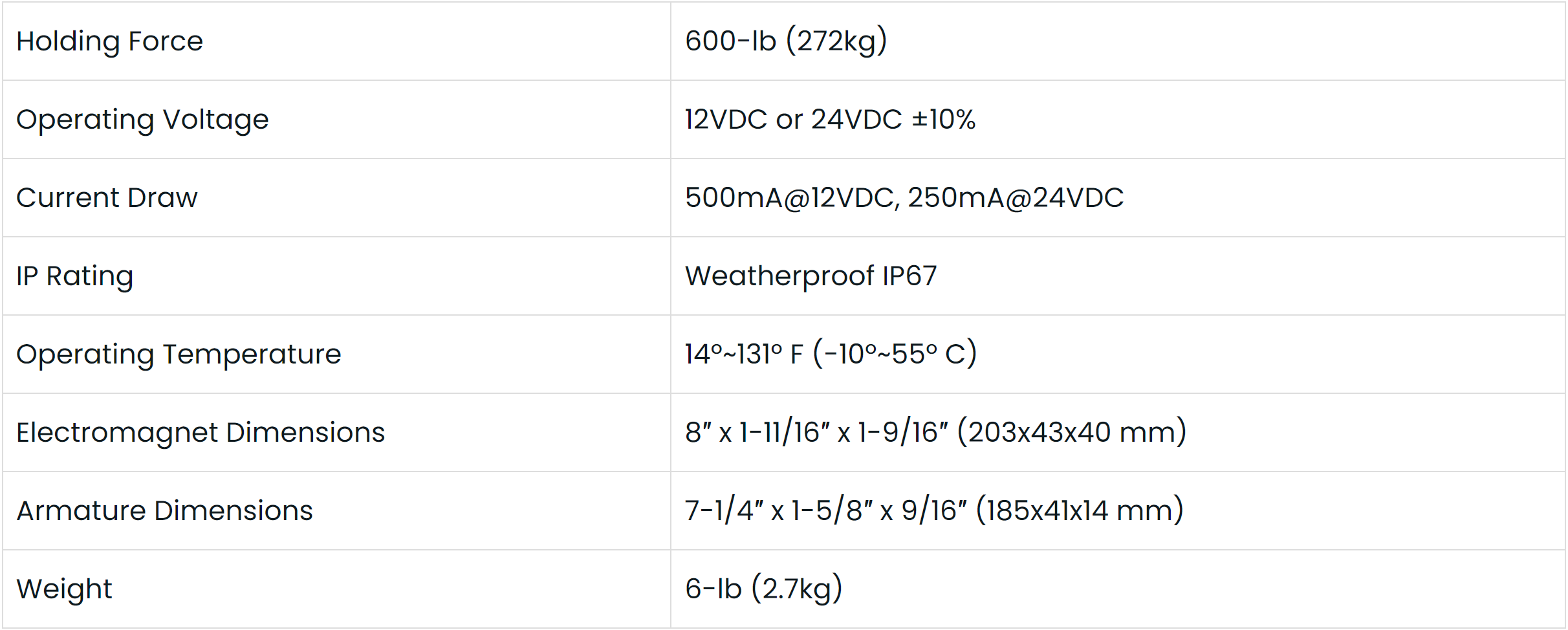 - 600-lb (271kg) Holding force