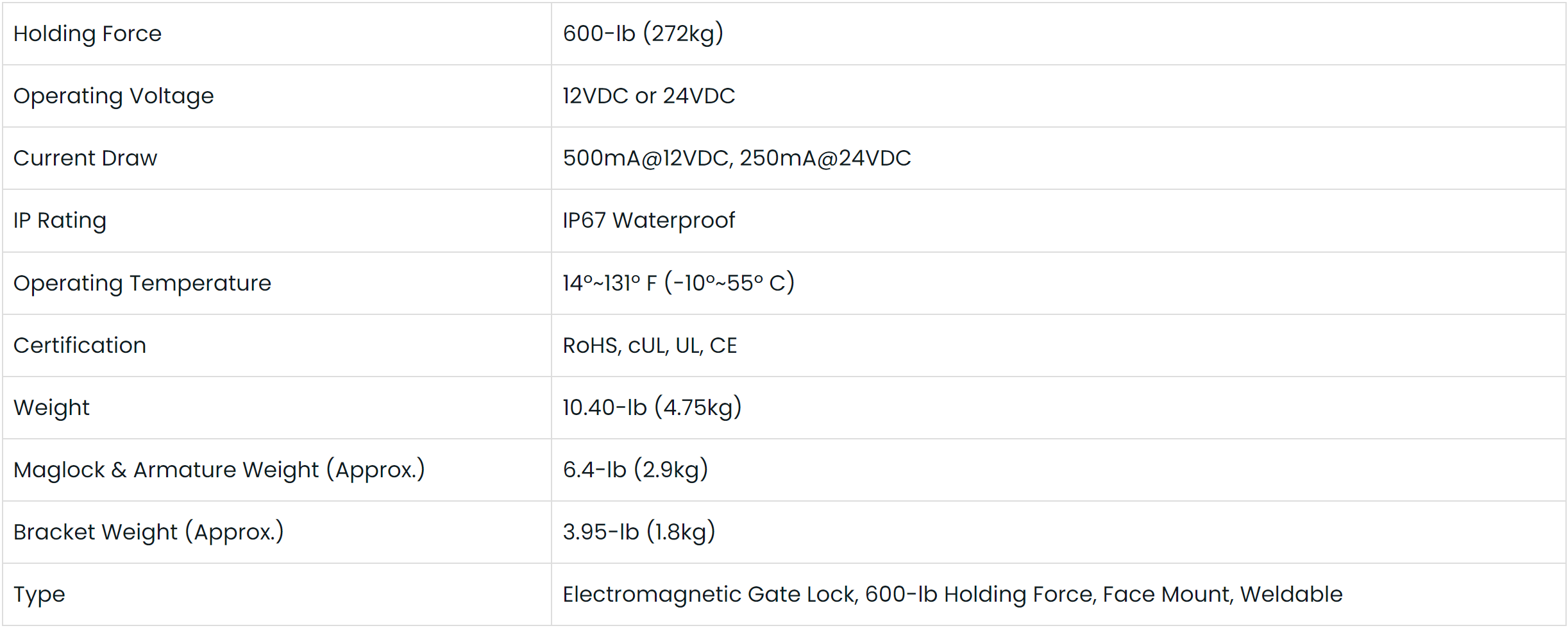 Seco-Larm SEA E-942FC-600SQ 600LB Maglock, With Weldable Brackets