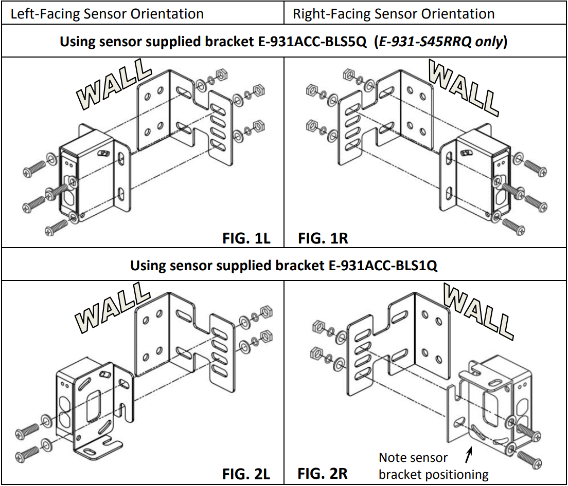 screws (not included) and facing in the proper direction for the desired left or right facing orientation before proceeding with attachment of the sensors.
