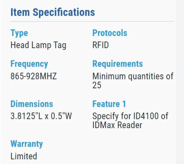 RFID ID-HMT-L3SP Transponder, External Headlamp