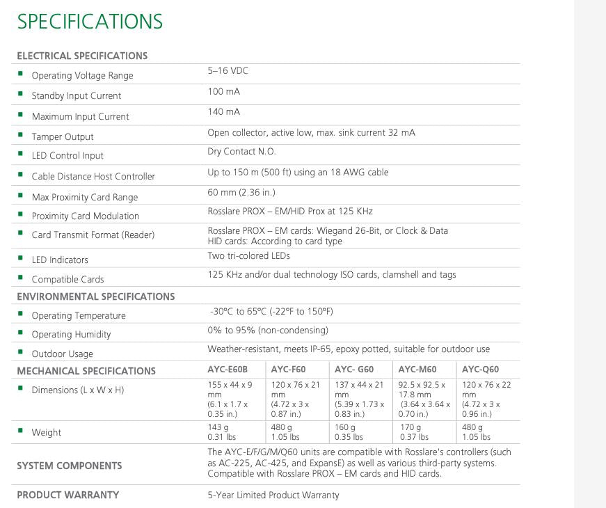 - Default operation as a multi-format reader (Rosslare PROX EM/HID Prox at 125 kHz, Wiegand 26-Bit, Clock & Data)