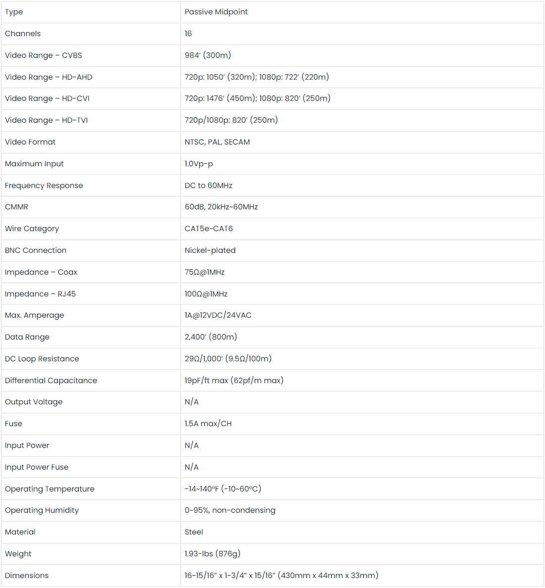 • 720p HD-CVI video; other formats will have different maximum ranges