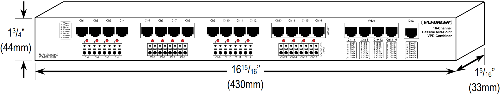 Enforcer VPD (Video/Power/Data) Combiners work in conjunction with standard passive VPD baluns and RJ45 cables to simplify and organize a large scale CCTV installation. Using this allows for increased flexibility and simplified, more organized cable installation, providing power to cameras while delivering high quality video all over a single CAT5e/6 cable. Troubleshooting is therefore greatly simplified and clutter reduced. ENFORCER VPD Combiners are compatible with all HD analog, including HD-AHD, HD-CVI, and HD-TVI, as well as traditional analog formats.