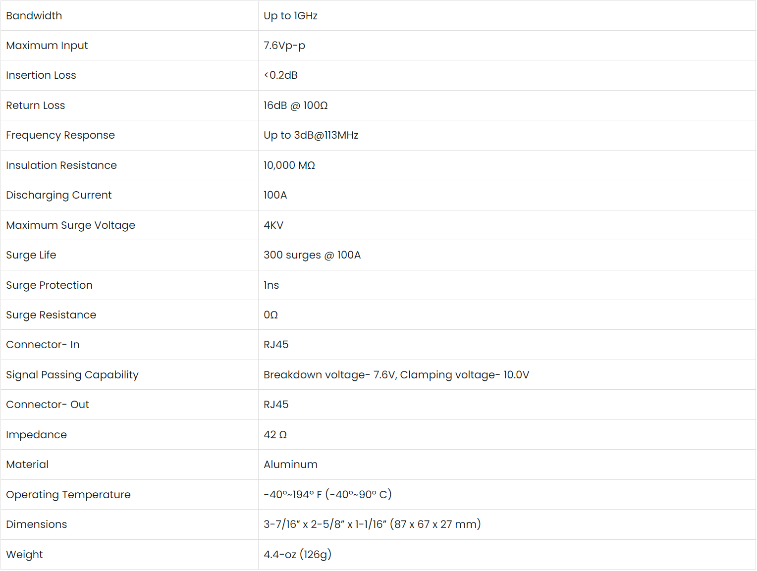 - Installs on Cat5e/6 4-pair UTP cable with RJ45 jacks