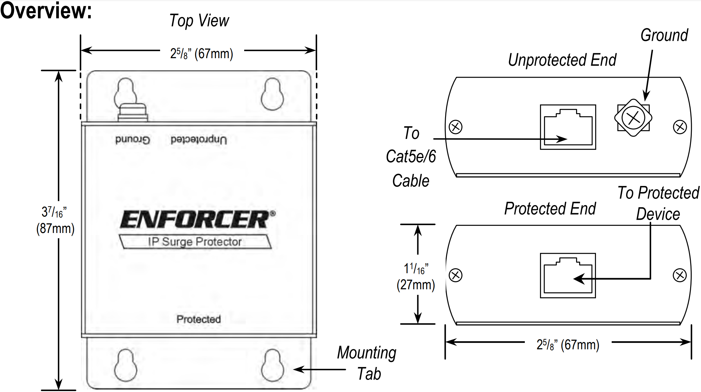 The Enforcer IP Surge Protector is a passive device that helps protect sensitive networking equipment from power surges. The device can be deployed in new installations or added to existing ones. The IPV-PD88Q IP Surge Protector should be installed between devices connected by Cat5e/6 4-pair UTP cable to protect against surges that could damage computer or video equipment.