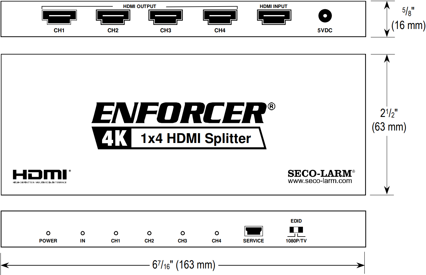 Seco-Larm MVD-AH14-01Q HDMI Splitter-up to 4