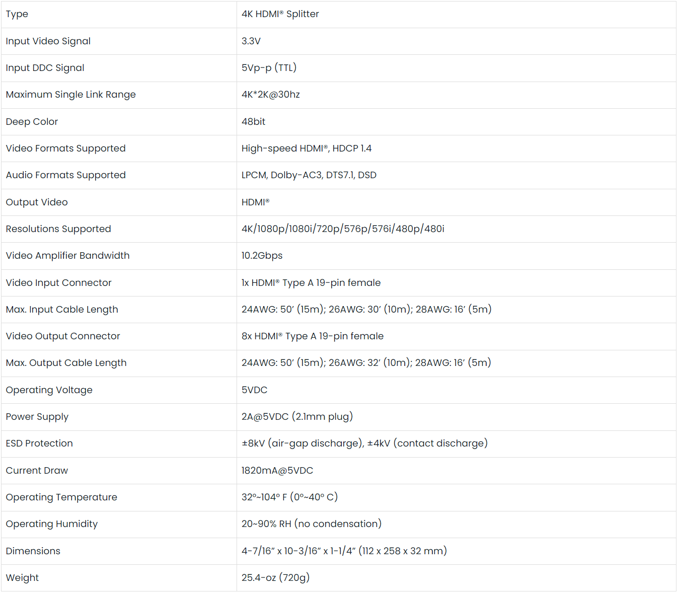 Seco-Larm MVD-AH18-01Q HDMI Splitter up to 8