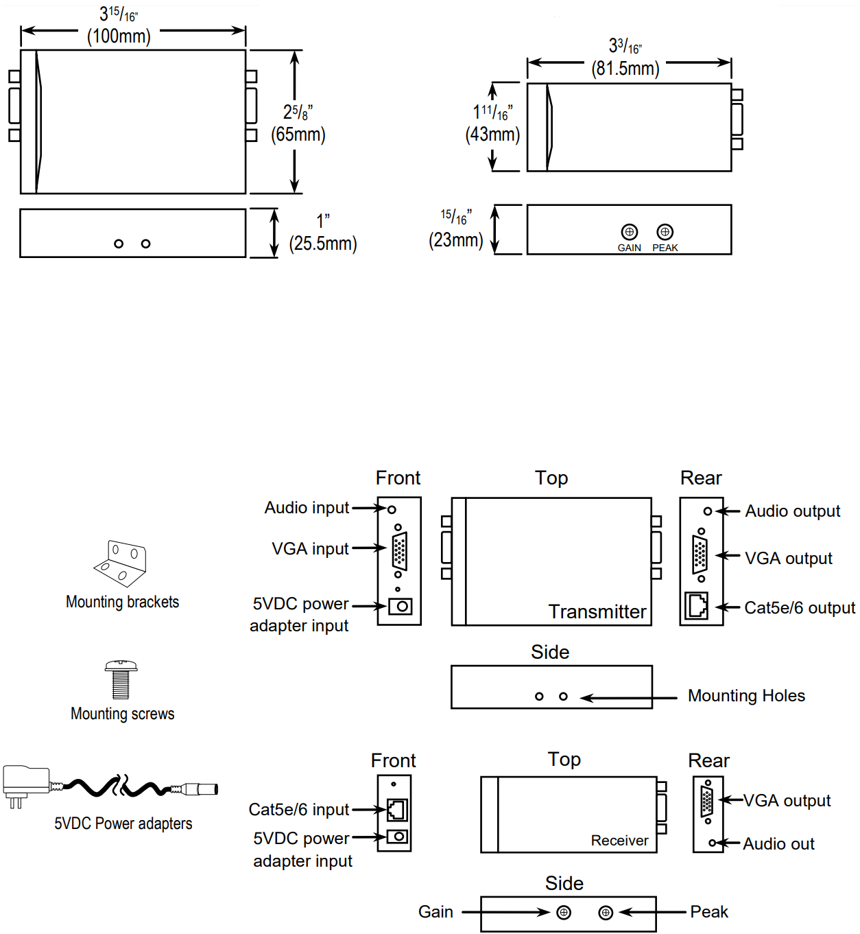 - Extends the range of VGA and stereo signals up to 984ft (300m) over one Cat5e/6 cable