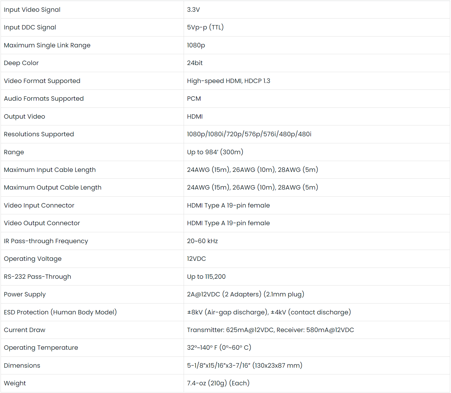 - Transmits up to 984ft (300m) at 1080p over two wires