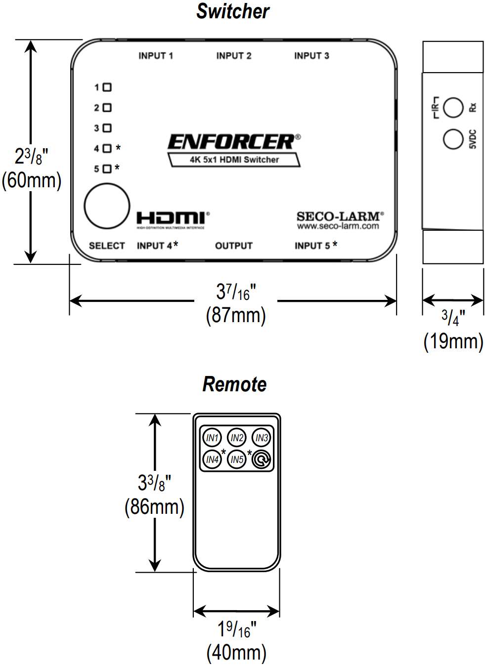 Seco-Larm MVS-AH31-01NQ HDMI Switcher 3 HDMI Inputs