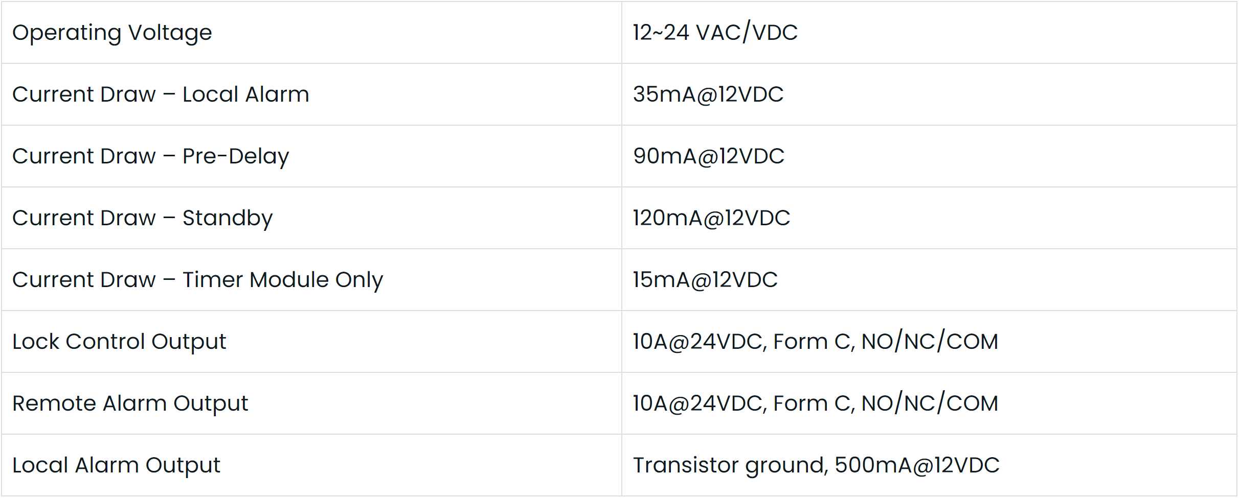 - Free egress input allows easy exit during the delay