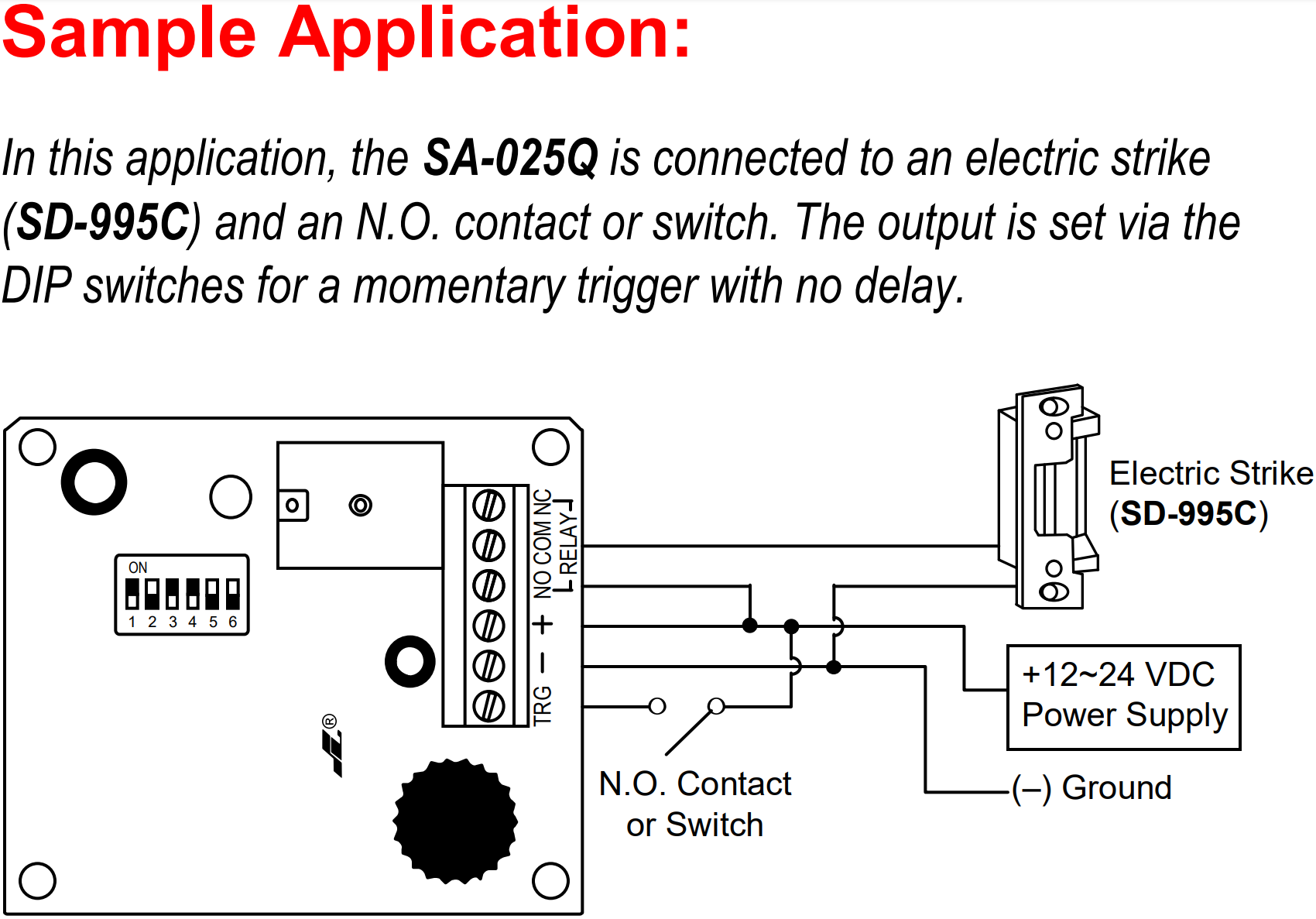 The SA-025Q Programmable Timer Module is suitable for a wide range of timed security and access control operations. Auto-sensing of input voltage and DIP switches for programming make installation easy.